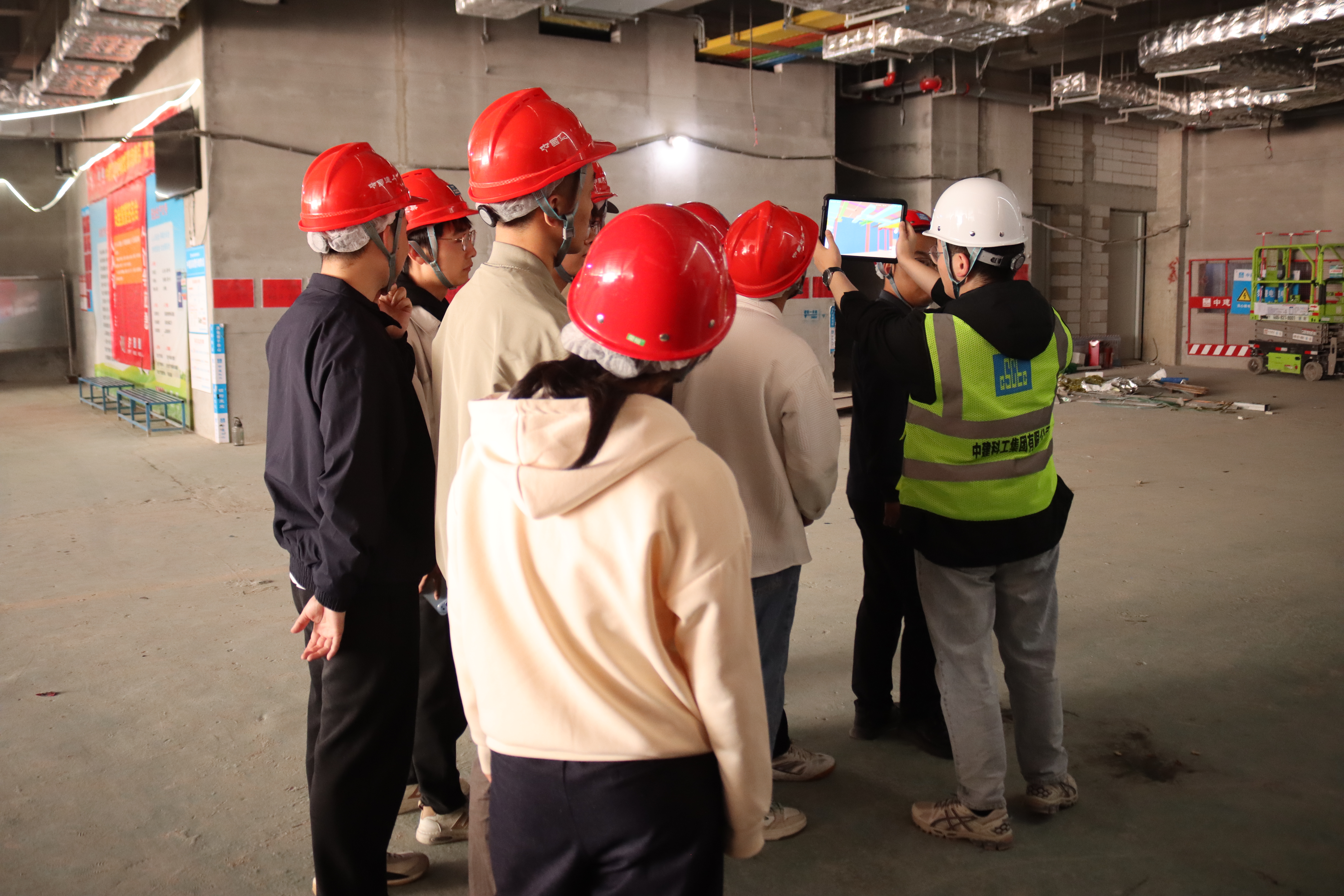 随后,实践团前往深圳博物馆项目现场,项目技术人员围绕项目设计初衷、核心理念展开细致解读,重点分享了施工工艺的独特优势与核心技术,细致介绍各楼层的设计规划与功能构想,让同学们感受到建筑业向工业化、绿色化、智能化转型的行业趋势。