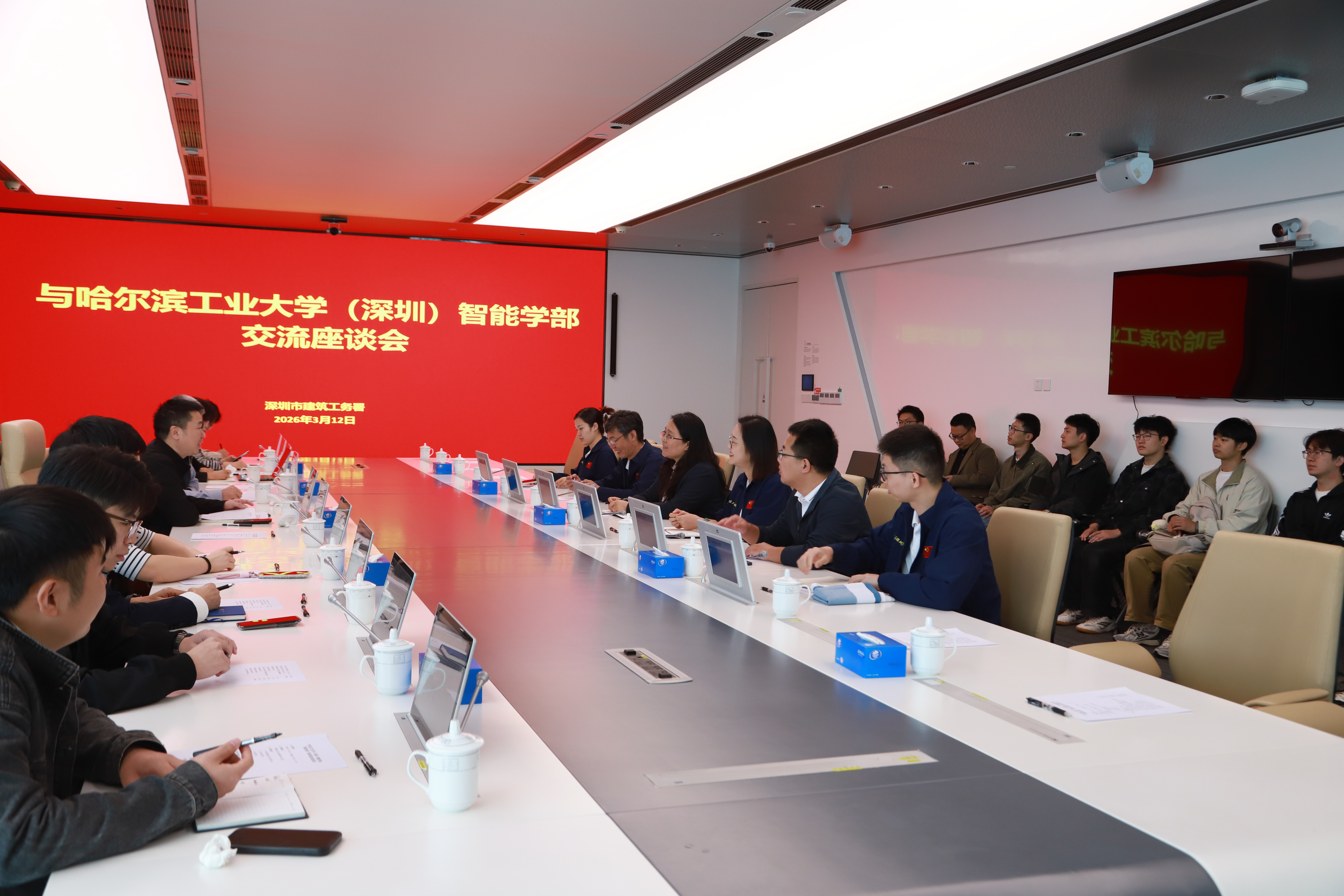 3月12日上午,实践团迎来本次企业实践行的收官之站——深圳市建筑工务署。实践团走进深圳市政府工程建设管理展示厅,通过图文资料、实体模型与数字化演示,系统了解深圳城市发展沿革、工务署二十年发展历程,以及政府投资工程项目全生命周期管理体系,学习了深圳大学城、深圳海洋大学等代表性工程的建设亮点。展厅内BIM技术、智慧工地监测系统、装配式建造等前沿技术的应用展示,让队员们直观感受到深圳在工程建设领域的科技引领实力。