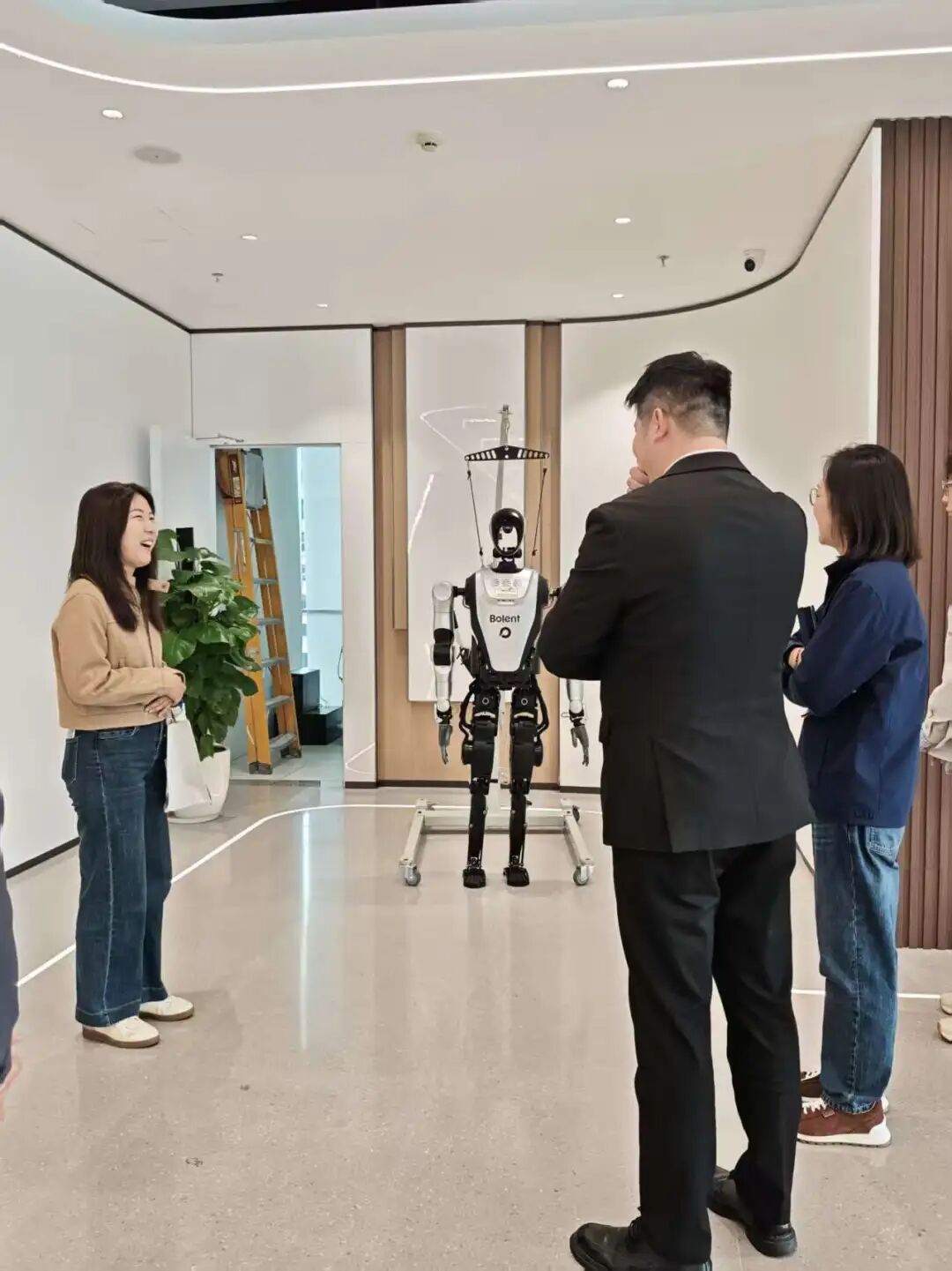 3月6日上午,实践队走进深圳人才集团招聘中心下属深圳市千里马国际招聘有限公司。企业负责人带领同学们参观了集团的标志性装置——伯乐机器人,生动形象地展示了科技在人才服务领域的创新应用,并热情邀请同学们与机器人合影留念。