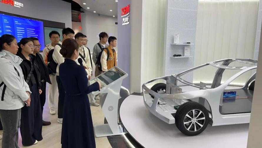3月5日下午,实践队抵达欣旺达电子股份有限公司。 企业负责人带领同学们参观了企业展厅,详细讲解了公司在消费类电池、动力电池、储能系统等领域的创新成果与技术布局,作为全球锂能源领域的领军企业,欣旺达在锂电池领域的技术积累令同学们印象深刻。