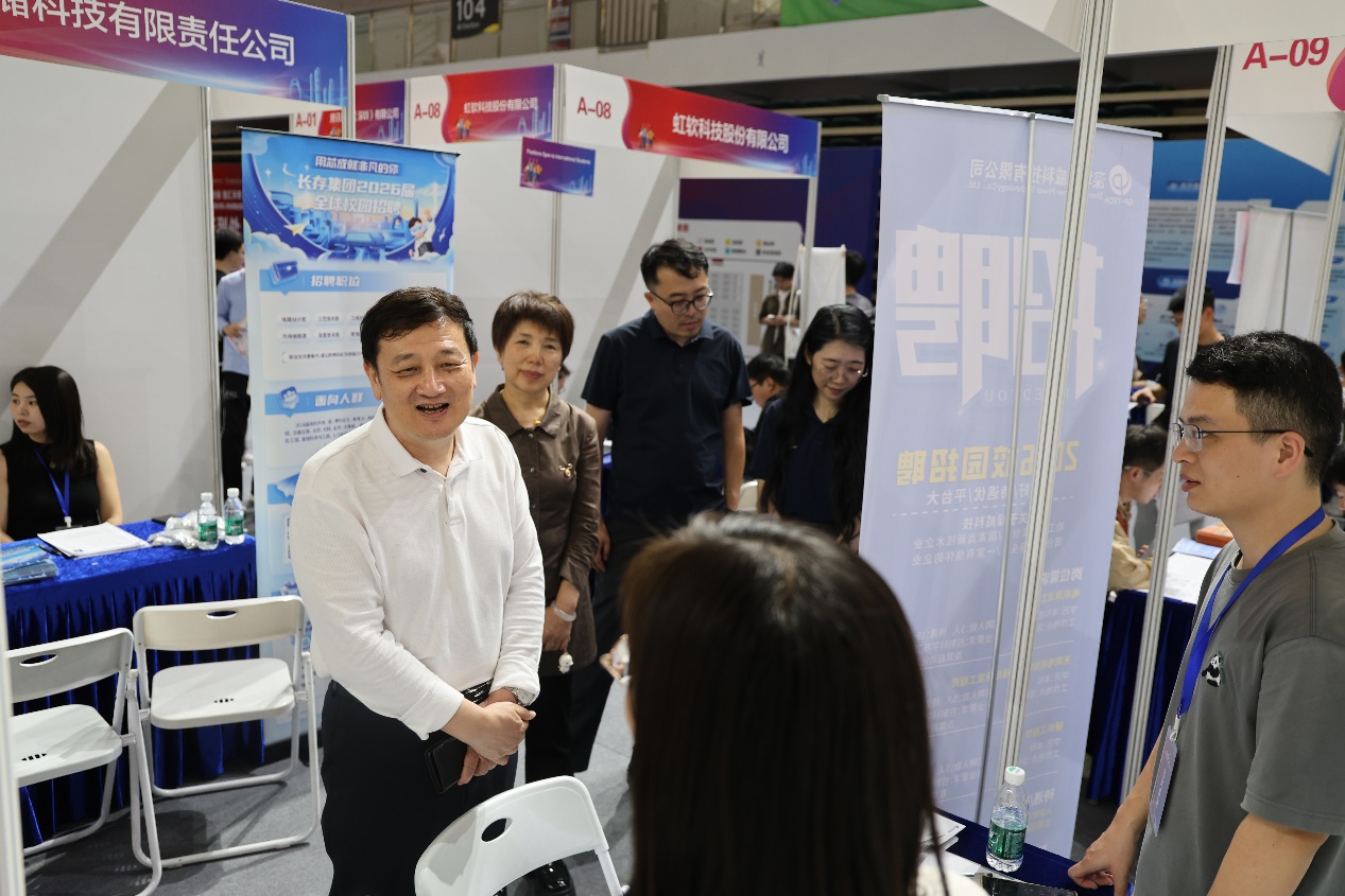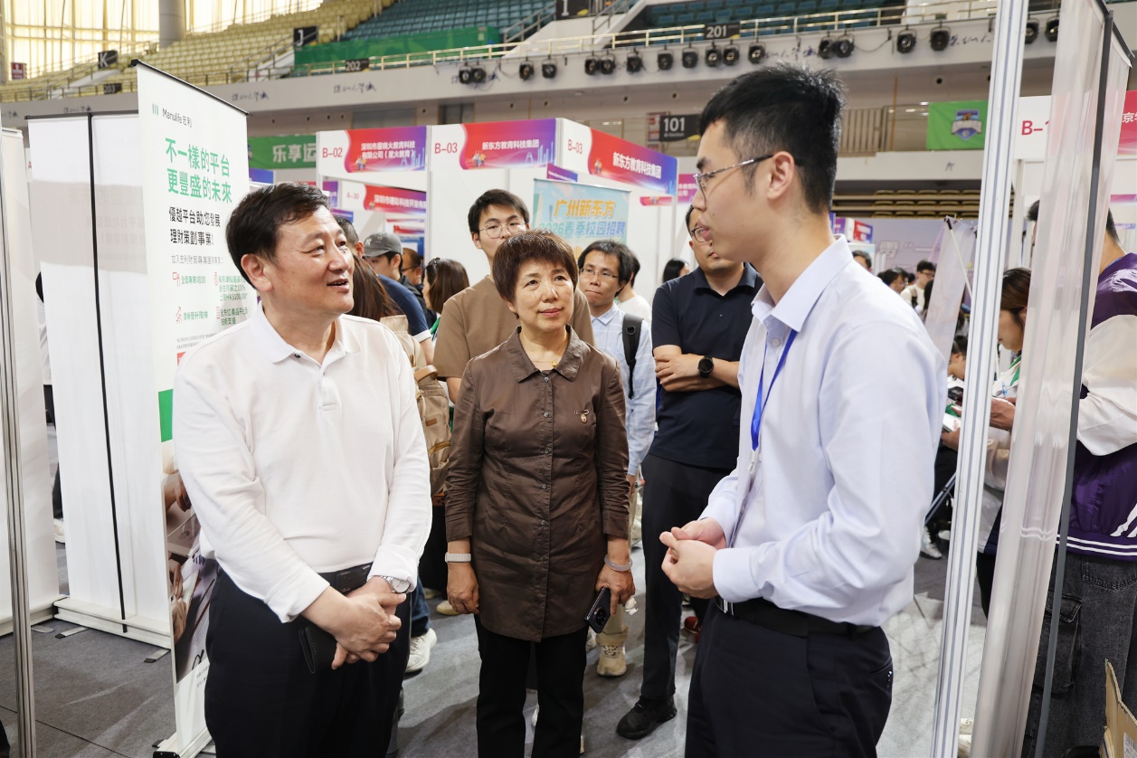 【哈工大(深圳)宣】(张韶琛 谢梁晖 文/图)日前,以“湾区职缘・智汇未来”为主题的2026春季大湾区重点用人单位就业实习双选会在深圳大学城体育馆举办。本次双选会由哈工大深圳校区、北京大学深圳研究生院、清华大学深圳国际研究生院与深圳市公共就业服务中心联合主办,吸引超过4000余名高校学子到场求职,为助力毕业生实现高质量充分就业提供良好平台。校区党委书记黄中、党委副书记张国宏前往双选会现场与用人单位及毕业生代表交流。