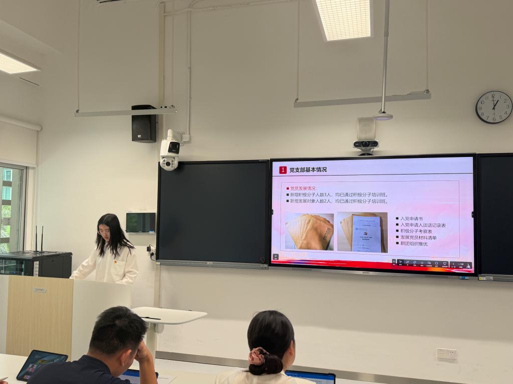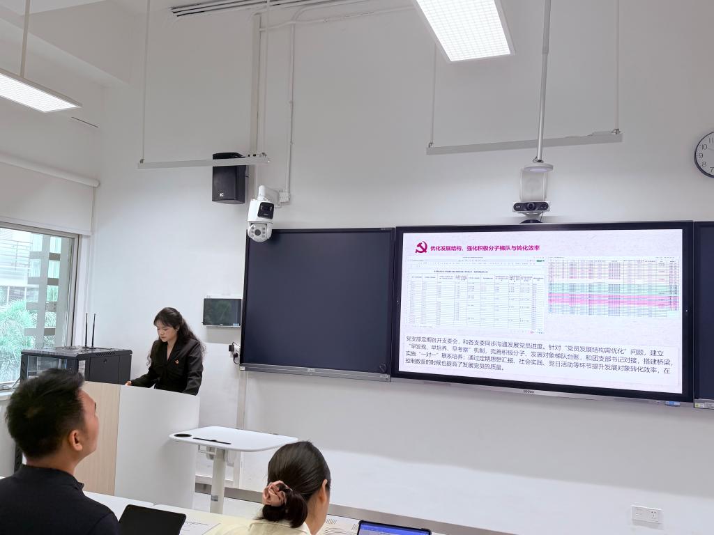 3名教工党支部书记和13名学生党支部书记聚焦2025年度党支部各项工作情况进行述职。围绕强化政治理论武装、严格党员发展流程、发挥党支部战斗堡垒作用和党员先锋模范作用、党建推动中心工作、打造支部特色品牌等,支部书记详细汇报了支部工作开展情况,总结了成绩,也深入剖析基层组织建设中的不足,提出了下一步工作计划。