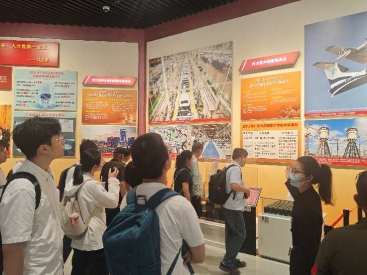 图4:学员们驻足观看广东科技创新成就展板
